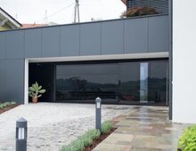 Eine neuartige Technik in der Verarbeitung von Glas, kombiniert mit äußerster Präzision, ermöglicht es auch Garagentore zu verglasen. Durch die bündige Verarbeitung des Glases mit der Laibung entsteht ein ruhiges und einheitliches Erscheinungsbild mit der Haustüre oder Hausfront.