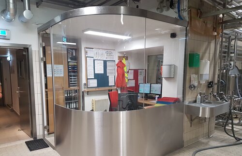 Die Trennwand wurde nach Naturmaßnahme abgewinkelt, u-förmig und teilweise mit gebogen Ecken gefertigt.
