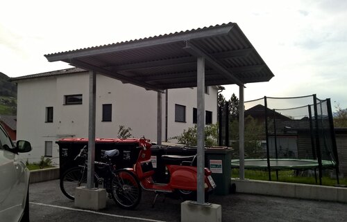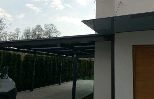 Wenn Sie dem Glas gegenüber eine undurchsichtige Terrassenüberdachung bevorzugen, können wir Ihnen eine Blecheindeckung oder eine Holzplatte mit einer Abdichtfolie anbieten.